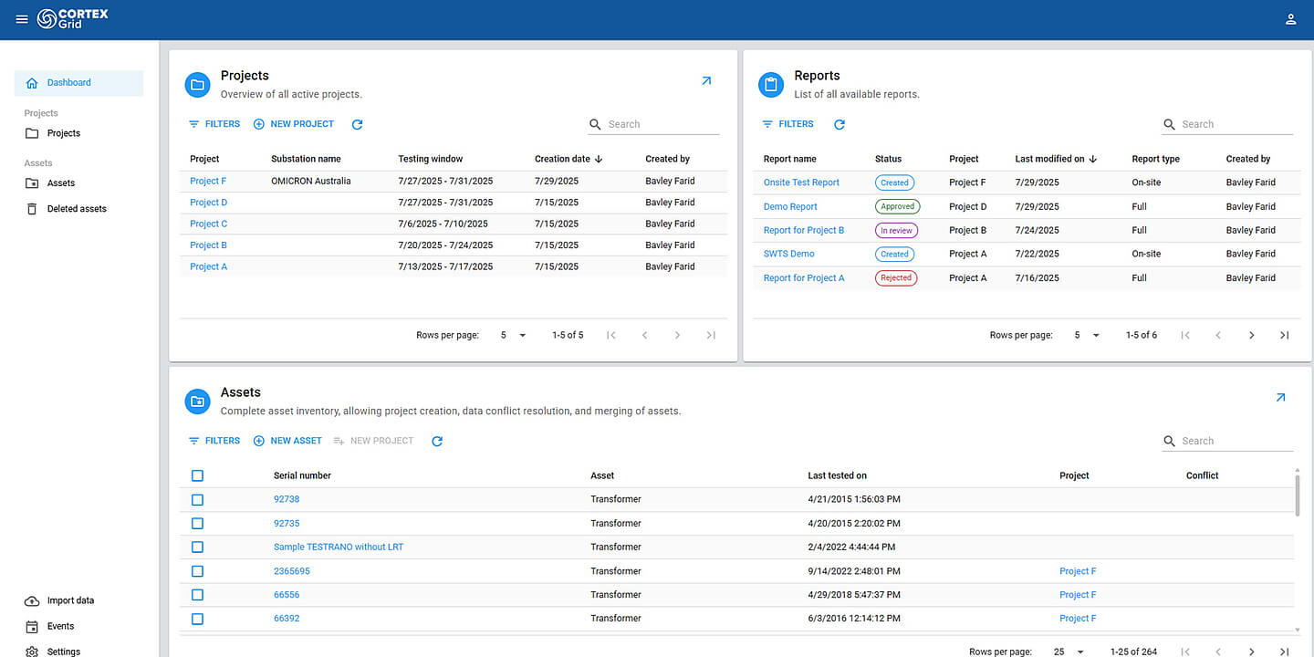 CORTEX Grid is a cloud-based software platform for managing test data, assessments, and reporting across a wide range of electrical assets. It helps test professionals and project managers efficiently collect, organize, and analyze data. Independent of device or location, CORTEX Grid provides centralized access and streamlined, customizable reports along with in-depth analysis tools.
